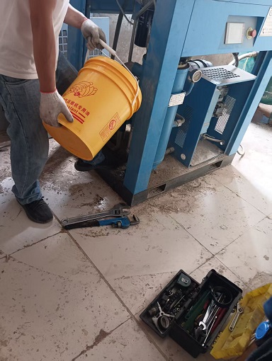 中午11點(diǎn),我公司空壓機(jī)維保工程師團(tuán)隊(duì)人員,到達(dá)現(xiàn)場(chǎng),對(duì)空壓機(jī)房現(xiàn)場(chǎng)進(jìn)行簡(jiǎn)單的清理后,等到11點(diǎn)30分,用戶(hù)下班吃午飯時(shí)間,我們正式開(kāi)始空壓機(jī)保養(yǎng),更換空氣濾清器,機(jī)油過(guò)濾器,油氣分離器,排放舊油,加注新空壓機(jī)油,并對(duì)各部件進(jìn)行檢查,排除一些潛在的故障。最后對(duì)設(shè)備進(jìn)行衛(wèi)生清理,灰塵吹掃,歷時(shí)一個(gè)小時(shí),空壓機(jī)保養(yǎng)工作完成,空壓機(jī)又煥發(fā)出新的生機(jī),打氣強(qiáng)勁有力。老板看了之后,對(duì)我公司專(zhuān)業(yè)的空壓機(jī)維修團(tuán)隊(duì)很認(rèn)可。