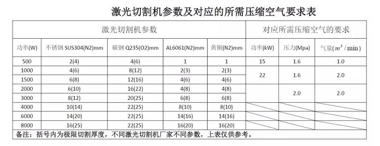 激光切割機對壓縮氣源的要求